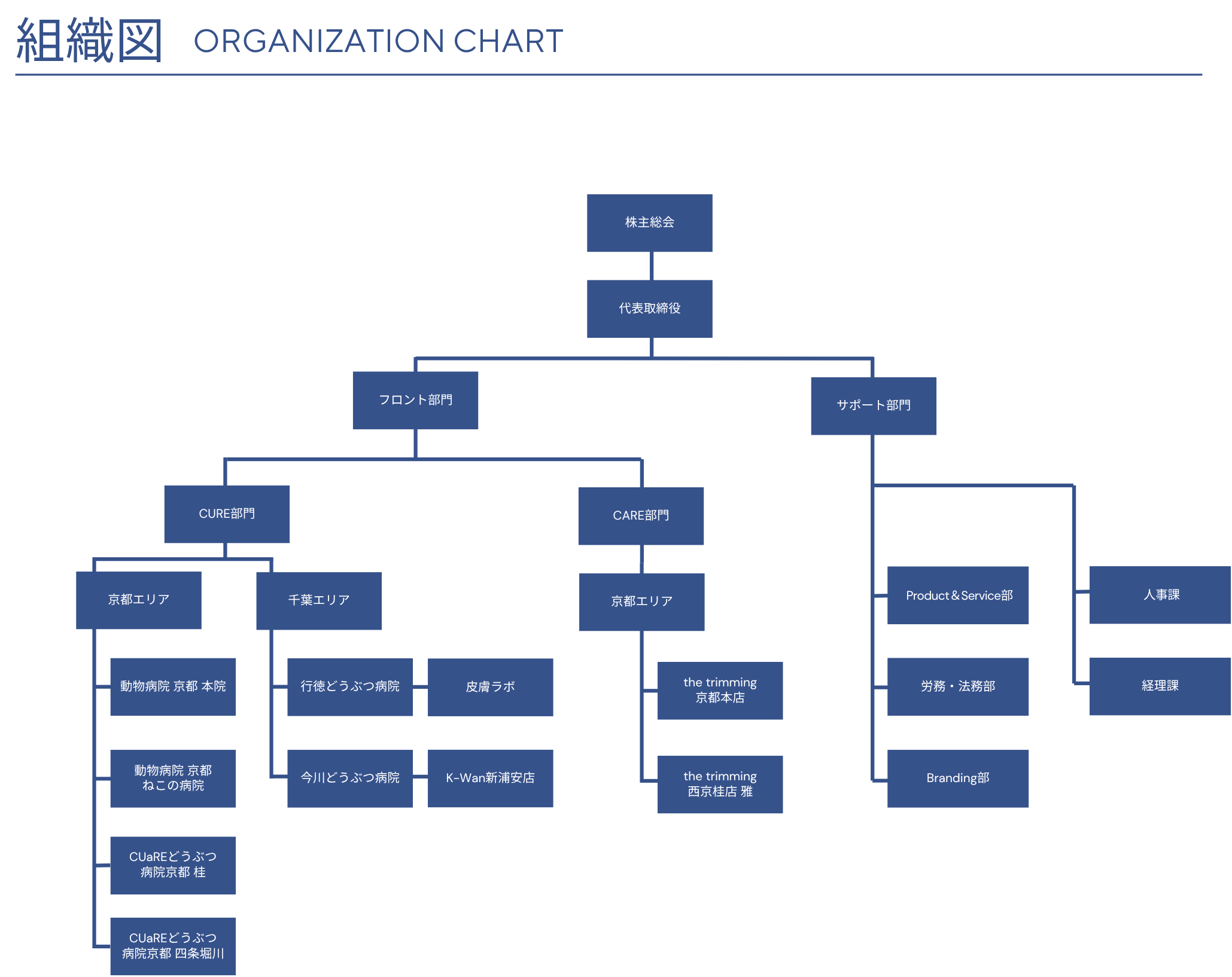 どうぶつ病院京都株式会社の組織図は以下の通りです。